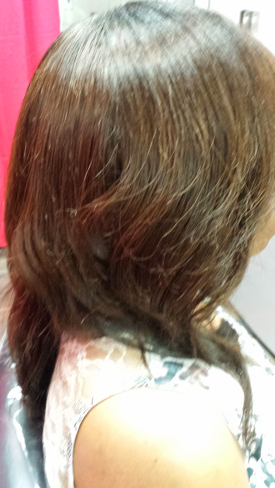 Once the hair is sewn on I then curled it and blended her natural hair in. Here are the after results.